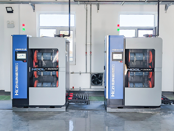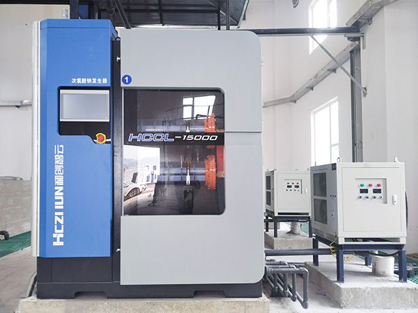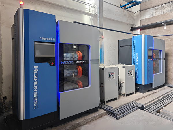 采用無隔膜電解法電解稀鹽水,在線制備低濃度次氯酸鈉溶液的裝置。具有原料易得、產物純凈、安全可靠的特點。適用于各類氯化消毒水處理。