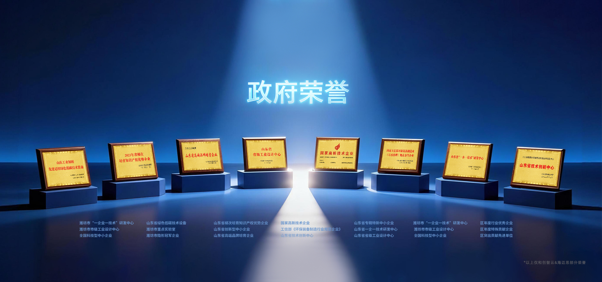 和創智云先后榮獲榮獲國家高新技術企業、工信部環保裝備制造業(污水治理)行業規范條件企業、山東省技術創新中心、山東省“一企一技術”研發中心、山東省省級工業設計中心、山東省高端品牌培育企業、山東省梯次培育知識產權優勢企業、山東省“專精特新”中小企業、濰坊市隱形冠軍企業、濰坊市重點實驗室等榮譽。順利通過五項山東省科技成果鑒定,擁有兩項山東省技術創新優秀成果,參與十三五水專項——《城鎮供水系統關鍵材料設備評估驗證及標準化》及行業多項國標、團標制定等。